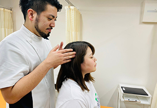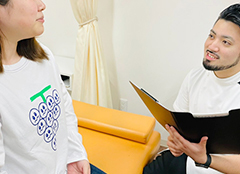 症状を聞く「問診」、患部を観察する「視診」、患部に触れて状態を確認する「触診」を行い、症状改善までのプランを作成します。